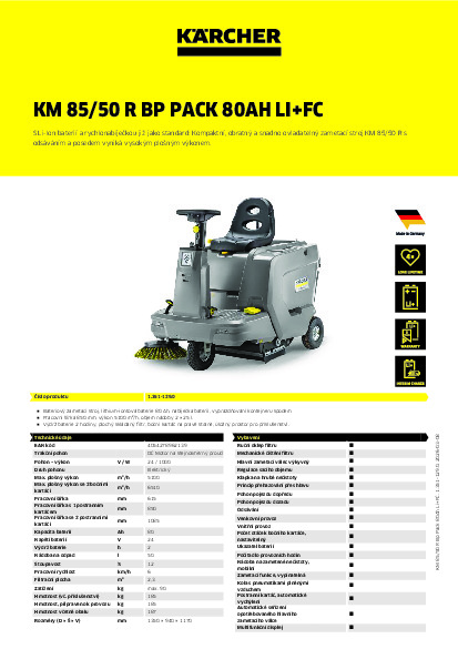 DomůZametací strojeS místem pro řidičeZametací stroj s odsáváním Kärcher KM 85/50 R Bp Pack 80Ah Li+FC