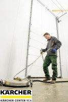 Čištění ploch s automatickým odsáváním špinavé vody pro zvlášť velké plochy - to je FRV 50 Me. Čištění horkou vodou do 85 °C. FRV 50 Me je vybavený teplotně odolnou odsávací hadicí s délkou 10 m z polyuretanu. Kolečka, která nezanechávají stopy a dvě keramická ložiska představují další známky kvality. Sadu trysky pro konkrétní stroj je nutné objednat zvlášť. Max. 250 bar / 2000 l/h / 85 °C.