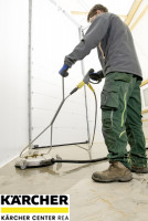 Díky automatickému odsávání špinavé vody je čištění ploch s FRV 50 Me z ušlechtilé oceli efektivnější a čistič ploch lze použít uvnitř i venku. Čištění horkou vodou do 85°C.