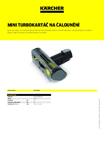 DomůDomácí technikaPříslušenství pro hobby strojeVysavačeSací hubice a kartáčeKärcher Mini turbokartáč na čalounění VC 4/VC 6 Cordless