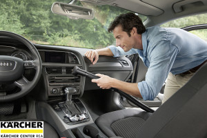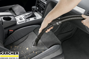Sada příslušenství pro čištění povrchů v interiéru automobilů. Sací kartáč s tvrdými štětinami zajistí důkladné vyčištění čalouněných povrchů a koberců,