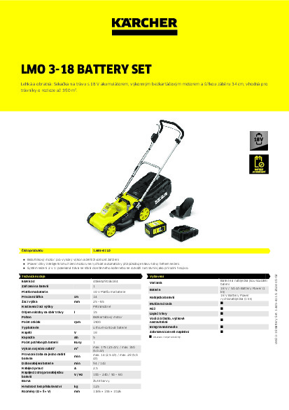 Sekačka na trávu Kärcher LMO 3-18 Battery Set + DÁREK: BATERIE NEBO RYCHLONABÍJEČKA S 50% SLEVOU!