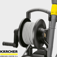 - Hygienické požadavky - Integrovaný naviják hadice s tlakovou hadicí a robustními šedými koly. Teplota přiváděné vody až 80 °C. Šedá kola odolná proti otěru.