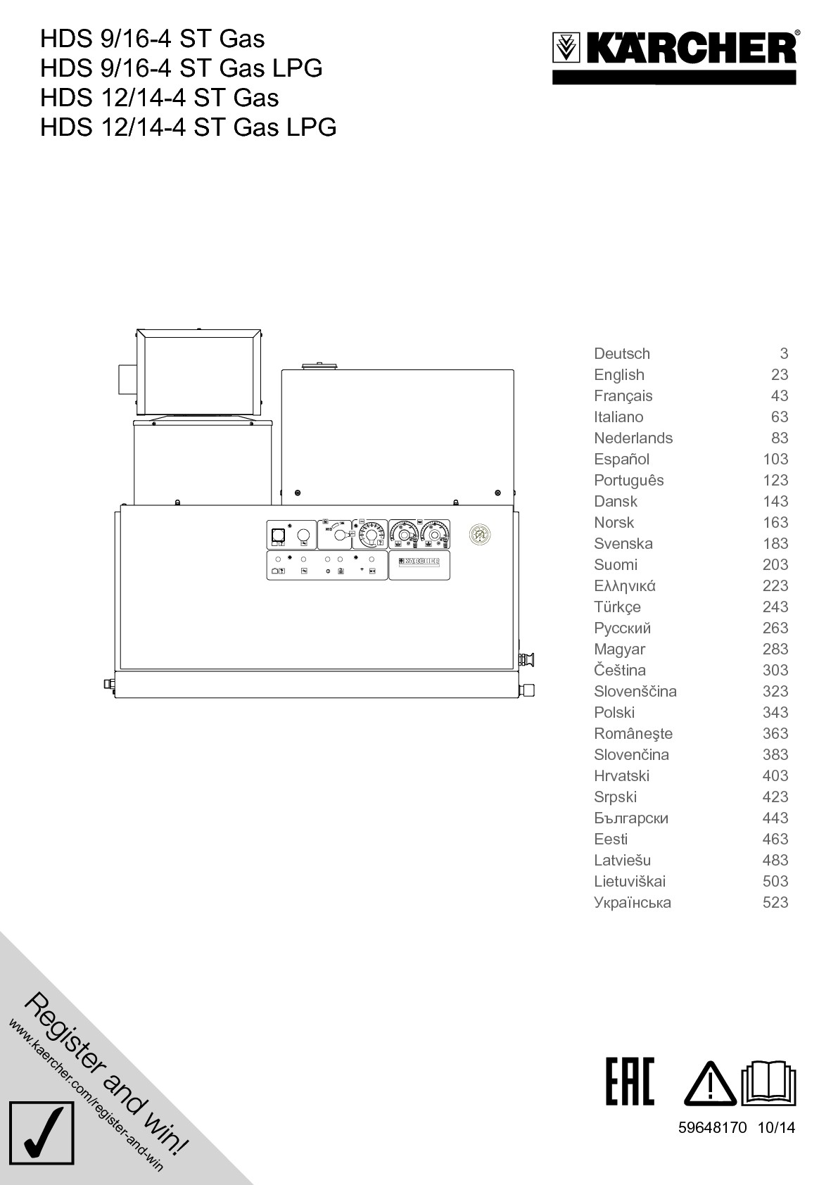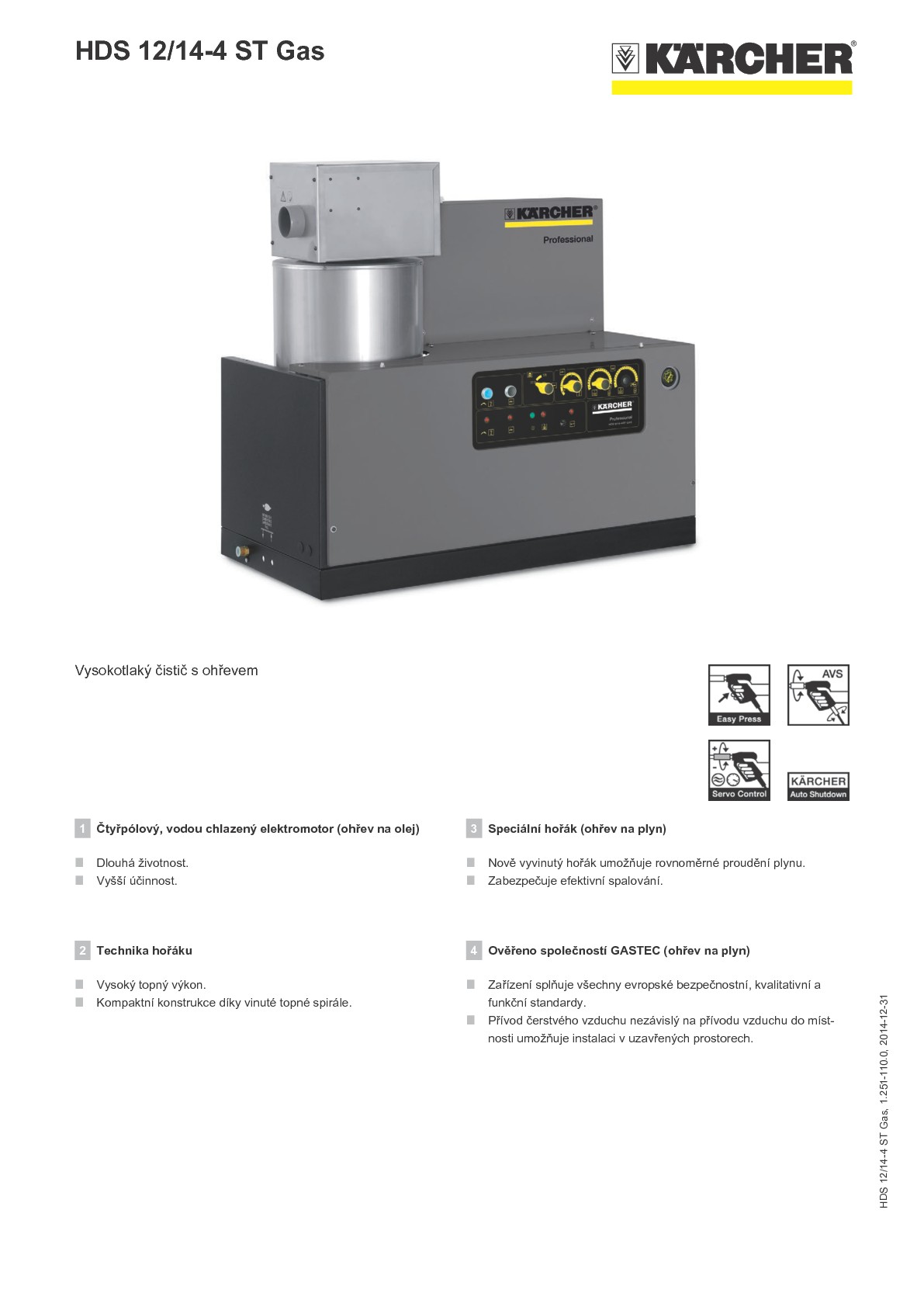 DomůVysokotlaké čističe KärcherVysokotlaké čističe s ohřevemStacionárníVysokotlaký čistič HDS 12/14-4 ST Gas