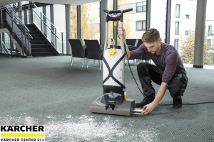 Kompaktní stroj pro průběžné čištění malých kobercových ploch. Rychlé oživení koberce pro bezprostřední pochůznost. Ekonomické využití na plochách 200 až 600 m².