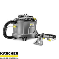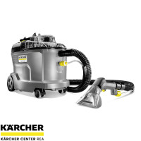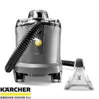Výkonný specialista na čištění čalounění i na odstraňování skvrn z textilních povrchů: Puzzi 8/1 sprejový extrakční čistič s ergonomickou, zvláště krátkou hubicí na čalounění.