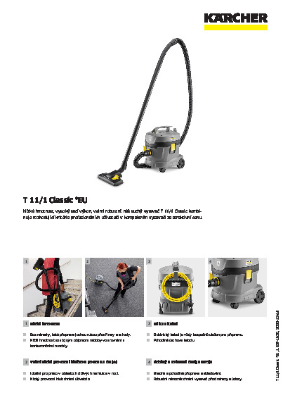 Nízká hmotnost, vysoký sací výkon, velmi robustní: náš suchý vysavač T 11/1 Classic kombinuje rozhodující kritéria profesionálních uživatelů v kompaktním vysavači za atraktivní cenu.