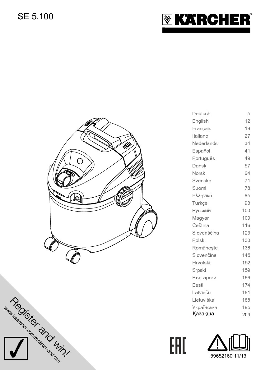 DomůDomácí technikaVysavačeTepovačeKärcher čistič koberců a mokro-suchý vysavač SE 5.100