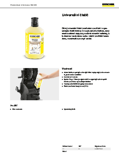Účinný univerzální čisticí prostředek (láhev 1l) k používání s VT čističi Kärcher nové generace (X-Range) se systémem Plug 'n' Clean: Jednoduše nasadit a pomocí VT čističe nastříkat.Ideální pro čištění okolo domu a na zahradě, pro mytí automo