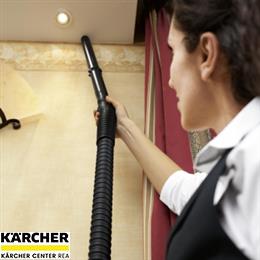 Kartáčový kobercový vysavač CV 38/2 Adv důkladně vyčistí hotelové haly, kinosály i kongresové místnosti. Snadno s ním zajedete také pod sedačky a stolky. Díky velké pracovní šířce 38 cm vám navíc úklid nebude dlouho trvat. Výšku kartáče lehce přizpůsobíte konkrétnímu typu koberce – s nastavením vám navíc pomůže praktická kontrolka. O pohodlí při práci se postará ergonomické teleskopické madlo stroje a dlouhý 12m přívodní kabel. Sací trubku jednoduše odpojíte a lišty nebo parapety vysajete přímo hadicí. Oceníte rovněž praktickou hubici na čalounění, která vám pomůže s čištěním nábytku, a spárovou hubici, s níž odstraníte pavučiny z každého koutu. Snadná je také údržba zařízení – filtrační odolný vliesových sáček vyjmete téměř bez prášení a kartáč vyměníte i bez nářadí. Uživatele potěší i intuitivní systém rychlé výměny highflex síťového kabelu vysavače.