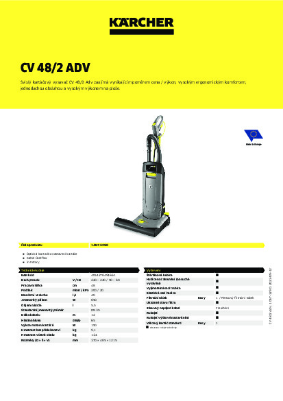 Svislý kartáčový vysavač CV 48/2 Adv zaujímá vynikajícím poměrem cena / výkon, vysokým ergonomickým komfortem, jednoduchou obsluhou a vysokým výkonem na ploše.