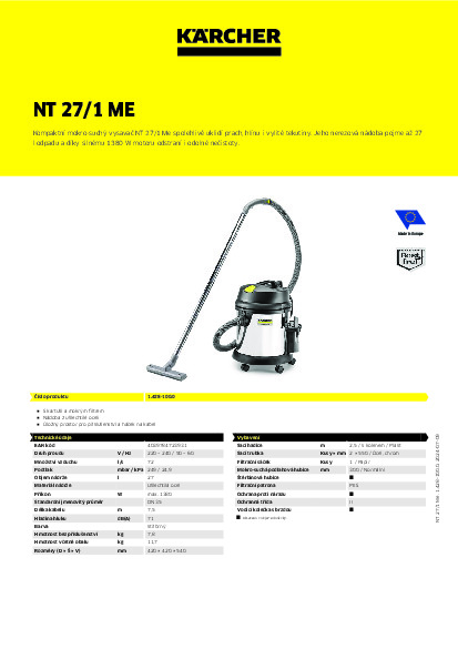 DomůVysavačeKärcher vysavač NT 27/1 Me