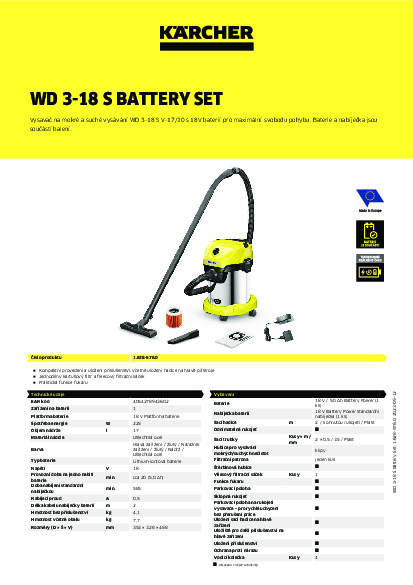 DomůVysavačeMultifunkční bateriový vysavač Kärcher WD 3-18 S BATTERY SET + DÁREK: BATERIE NEBO RYCHLONABÍJEČKA S 50% SLEVOU!