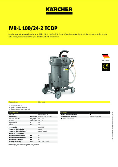 Průmyslový vysavač Kärcher IVR-L 100/24-2 Tc Dp