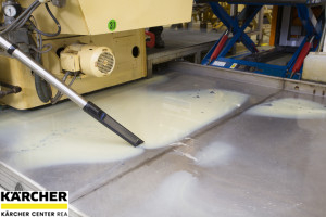 Výkonný vysavač na vysávání tekutin/špon - Kärcher IVR-L 100/30. S kompresorem bočního kanálu nepodléhajícím opotřebení. Konstruováno pro třísměnný provoz ve výrobě. Velmi dlouhá životnost.