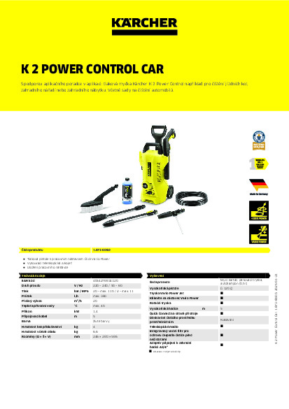 DomůDomácí technikaVysokotlaké čističeVysokotlaký čistič Kärcher K 2 Power Control Car