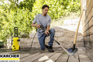 Znečištění aut, schodů, zahradního nářadí a venkovního nábytku se stane minulostí: Tlaková myčka K 2 Premium Home včetně sady Home Kit s čističem povrchů T 1 a čisticím prostředkem "Patio & Deck" o objemu 500 ml je ideálním řešením pro čištění větších ploch bez rozstřiku. Tlakový čistič K 2 Premium Home s jednoduchým postřikovačem a odstraňovačem nečistot s rotačním bodovým paprskem je ideálním řešením pro příležitostné úklidové práce kolem vašeho pozemku. Plochý proud dodávaného jednoduchého postřikovače a rotující proud poskytovaného čističe nečistot odstraní i odolné nečistoty. Tlaková myčka K 2 Premium Home se díky kolečkům s hladkým chodem snadno přepravuje, kamkoli je potřeba. Systém Quick Connect nabízí další pohodlí, protože jeho rychlospojka umožňuje snadné nacvaknutí a vycvaknutí čtyřmetrové vysokotlaké hadice ze zařízení a spouštěcí pistole. Veškeré dodávané příslušenství lze snadno uložit na samotný přístroj K 2 Premium Home.
