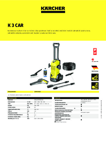 DomůDomácí technikaVysokotlaké čističeVysokotlaký čistič Kärcher K 3 Car