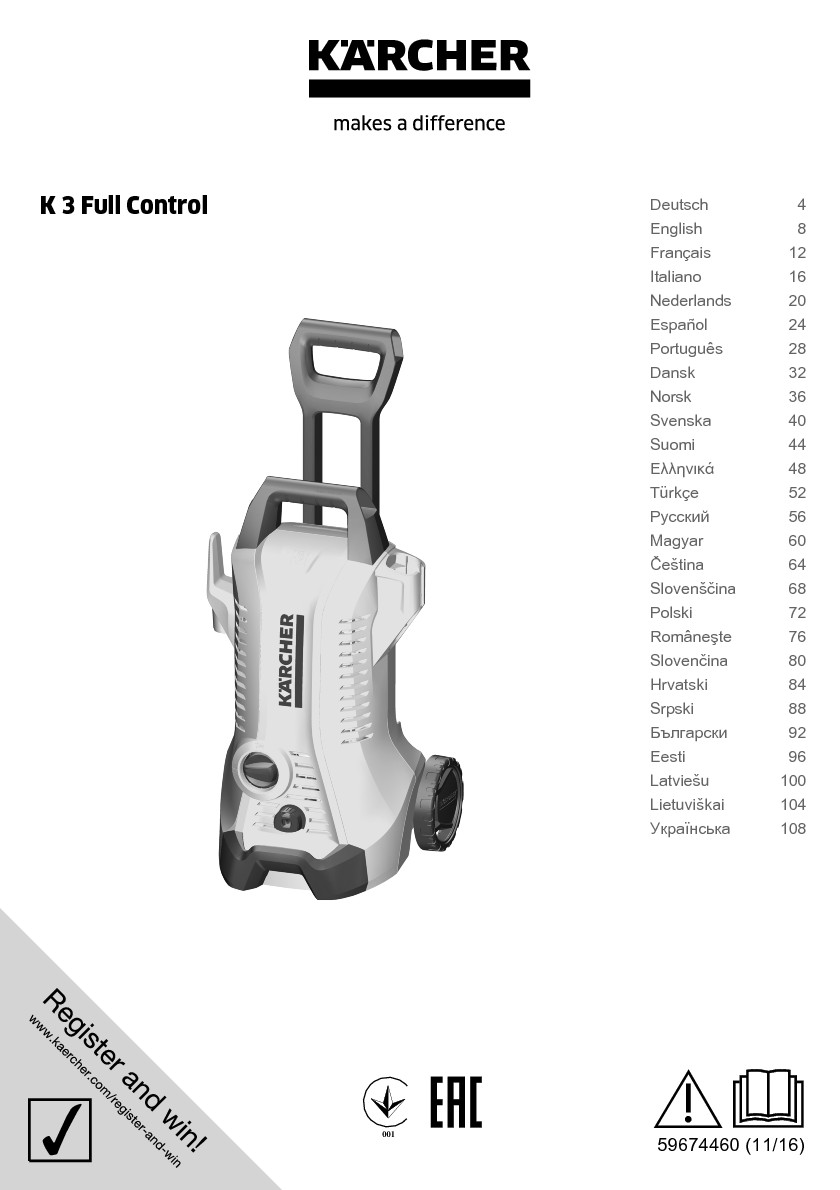 DomůDomácí technikaVysokotlaké čističeVysokotlaký čistič Kärcher K 3 Full Control Home