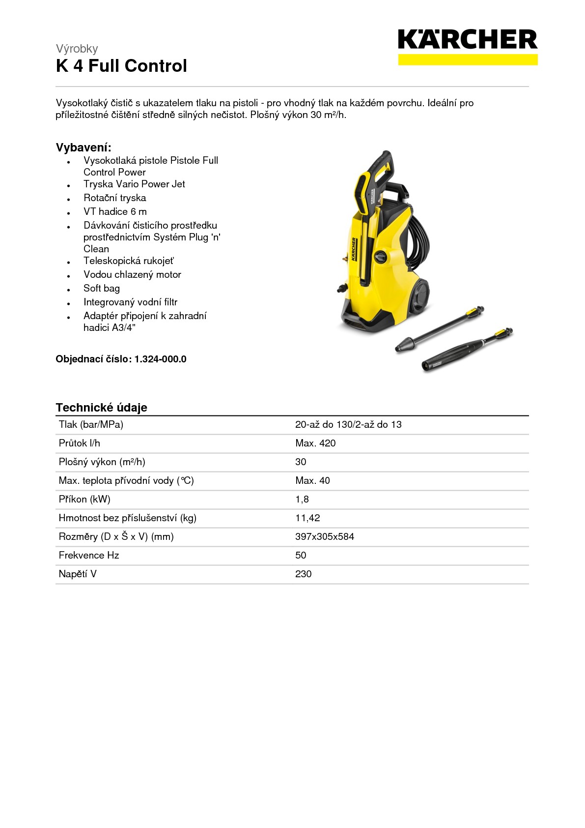 DomůDomácí technikaVysokotlaké čističeVysokotlaký čistič Kärcher K 4 Full Control