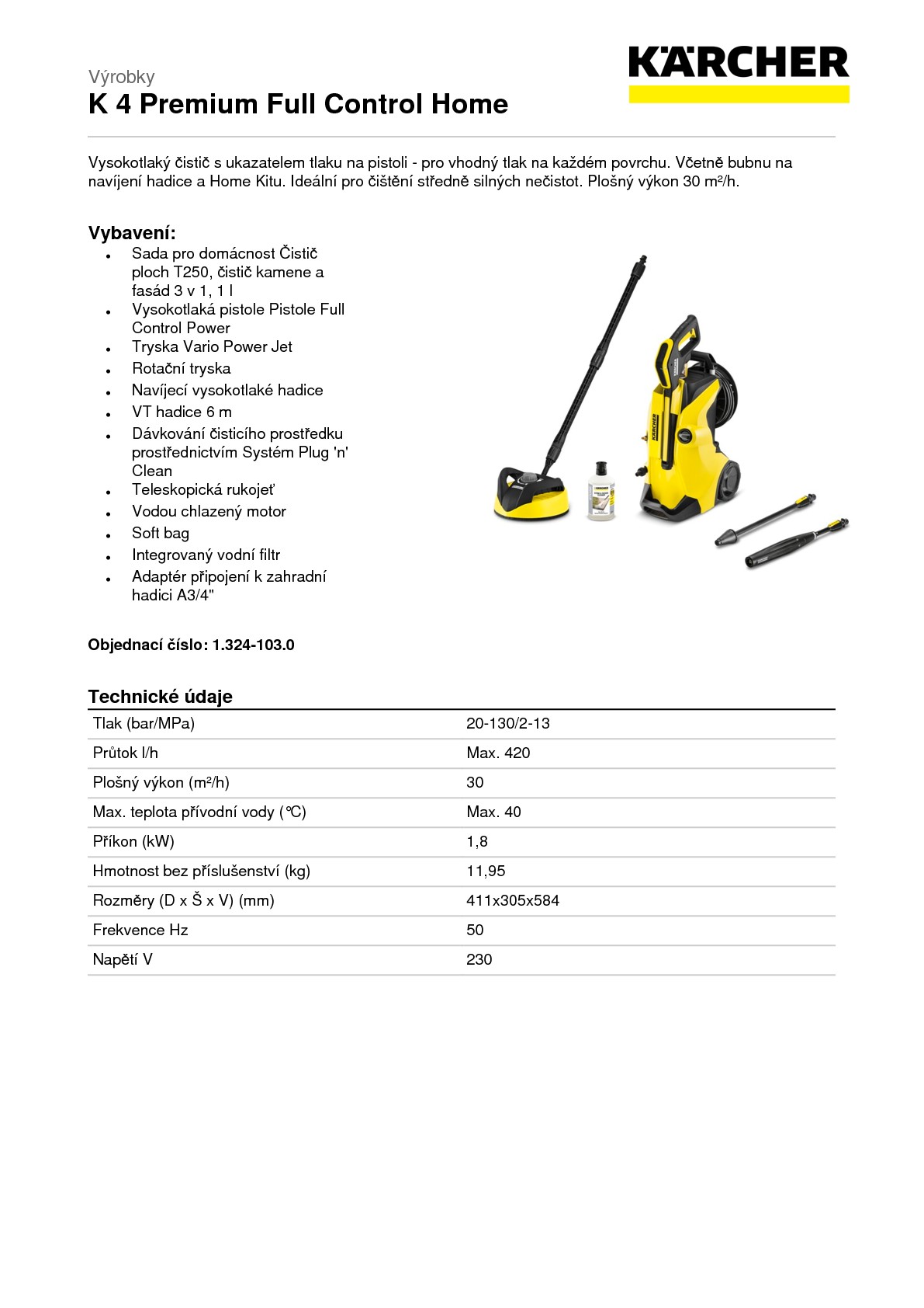 DomůDomácí technikaVysokotlaké čističeVysokotlaký čistič Kärcher K 4 Premium Full Control Home