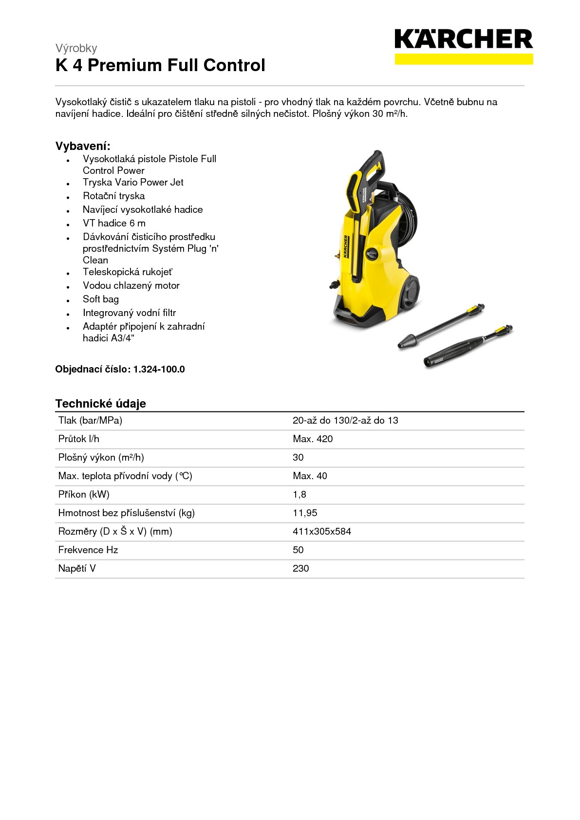 DomůDomácí technikaVysokotlaké čističeVysokotlaký čistič Kärcher K 4 Premium Full Control