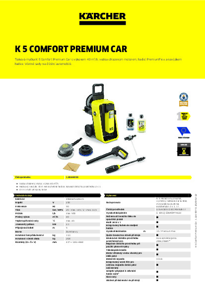 DomůDomácí technikaVysokotlaké čističeVysokotlaký čistič Kärcher K 5 Comfort Premium Car & Home + Dárek CASHBACK 1200,- Kč