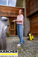 Tlaková myčka K 5 Comfort Premium Home s výkonem 40 m²/h, vodou chlazeným motorem, hadicí PremiumFlex a navijákem na hadici odstraňuje střední znečištění. Se sadou Home Kit a Car.