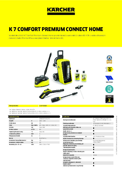 DomůDomácí technikaVysokotlaké čističeVysokotlaký čistič Kärcher K 7 Comfort Premium Connect Home + Dárek CASHBACK 1600,- Kč