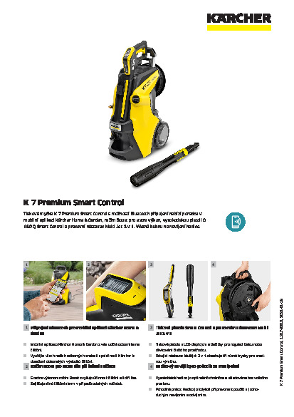 Tlaková myčka K 7 Premium Smart Control nabízí snadné připojení k mobilní aplikaci přes Bluetooth. Uživatel je podporován prostřednictvím mobilní aplikace Kärcher Home & Garden s praktickými tipy, triky a nastavením při čištění v různých situacích a při čištění různých objektů. Mobilní aplikace poskytuje užitečné funkce, jako je aplikační poradce pro ještě lepší výsledky, montážní pokyny a pokyny pro údržbu a péči. Zařízení disponuje režimem Boost pro zvýšení výkonu při čištění odolných nečistot. Vysokotlaká pistole G 180 Q Smart Control s LCD displejem a pracovní nástavec Multi Jet 3 v 1 nabízejí maximální kontrolu: tlak se nastavuje přímo na tlakové pistoli nebo se na tlakovou pistoli přenáší prostřednictvím mobilní aplikace. Na LCD displeji můžete zkontrolovat, která úroveň tlaku je nastavena, zda lze aktivovat zvýšení tlaku nebo zda je zařízení stále v klidovém režimu. Další výbavou je čisticí systém Plug ‘n’ Clean, vysoce kvalitní hliníková teleskopická rukojeť, parkovací poloha a snadno přístupné příslušenství. Včetně bubnu na navíjení hadice.