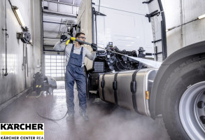 Vysokotlaký čistič s ohřevem třídy super boduje vysokým průtokem a sofistikovanými prvky výbavy, jako je automatický hadicový naviják s 20m vysokotlakou hadicí Ultra Guard.