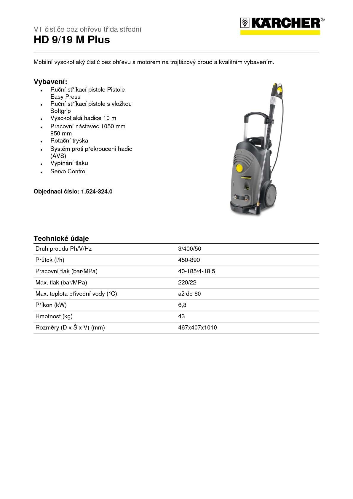 DomůVysokotlaké čističe KärcherVysokotlaký čistič Kärcher HD 9/19 M Plus