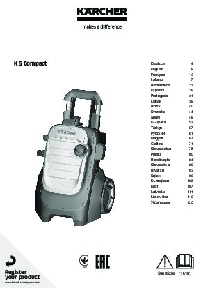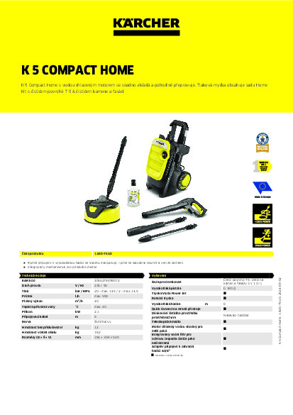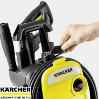 K 5 Compact Home spojuje nejvyšší komfort s plnou výkonností. Díky svému inovativnímu konceptu uložení hadice lze vysokotlakou hadici po použití jednoduše navinout na přední kryt a upevnit gumovou páskou pro bezpečnou přepravu. Kompaktní rozměry umožňují snadnou přepravu celého zařízení a jeho libovolné uskladnění – ať v regále nebo v zavazadlovém prostoru. Dvě madla pro manipulaci, výškově nastavitelná rukojeť a jak horizontální, tak i vertikální varianta používání se starají o ještě více komfortu při práci. K vybavení patří kromě pistole Quick Connect, vysokotlaká hadice 8 m, pracovní nástavec Vario Power (VPS), rotační tryska a vodní filtr. Vysokotlaký čistič K 5 Compact Home s vodou chlazeným motorem a plošným výkonem 40 m²/h je vhodný pro pravidelné používání při středně silném znečištění.