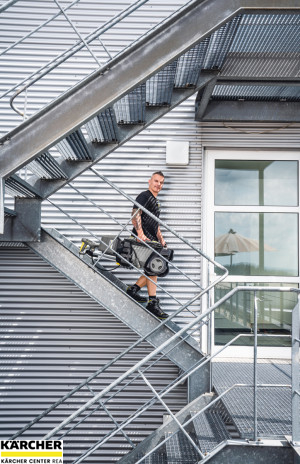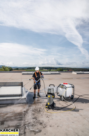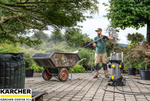 První profesionální AKU vysokotlaký čistič HD 4/11 C Bp Pack včetně dvou baterií Kärcher Power+ 36 V a dvou rychlonabíječek. Pro mobilní využití například v městských či terénních oblastech.