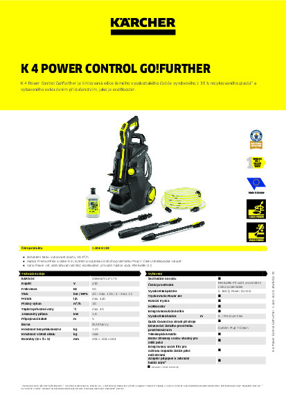 Vysokotlaký čistič Kärcher K 4 Power Control Go!Further + Dárek CASHBACK 800,- Kč