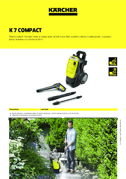 Tlaková myčka K 7 Compact model se snadno vejde i do kufru vozu. Díky vysokému výkonu si snadno poradí i s usazenou špínou. Za hodinu s ní vyčistíte až 60 m².