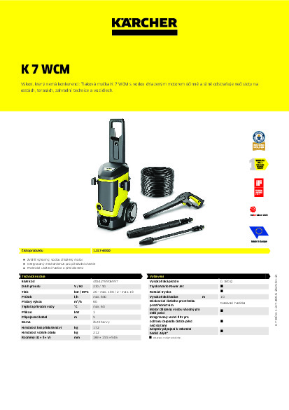 Vysokotlaký čistič Kärcher K 7 WCM + Dárek CASHBACK 1600,- Kč