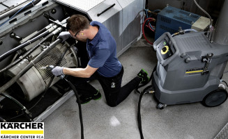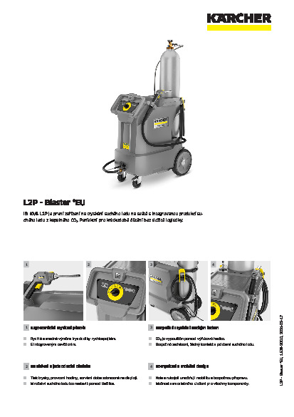 Spontánní čisticí práce se zařízením na tryskání suchého ledu při údržbě strojů nebo vozidel, při čištění ve výrobním procesu nebo při úpravě vozidla byly až dosud nemyslitelné, protože logistika suchého ledu byla pro krátkodobé aplikace příliš nákladná. To je nyní možné u IB 10/8 L2P, prvního zařízení na tryskání suchéým ledem na světě s integrovanou výrobou suchého ledu z kapalného CO₂. Díky inovativnímu postupu se pelety suchého ledu vyrábějí v případě potřeby z kapalného CO₂ - L2P znamená „Liquid-to-Pellet“. Protože kapalný CO lze skladovat v plynových lahvích prakticky neomezeně dlouho, je zabráněno obvyklé časově náročné logistice suchého ledu. Velmi nízká spotřeba stlačeného vzduchu stroje také významně snižuje požadavky na infrastrukturu. Zároveň jsou plně zachovány výhody technologie suchého ledu Kärcher. IB 10/8 L2P čistí velmi šetrně - také na složité kontury, jako jsou drážky, ložiska nebo drážky, a to i v případě silného znečištění. Spolehlivě se vyhnete zbytkům abraziva.