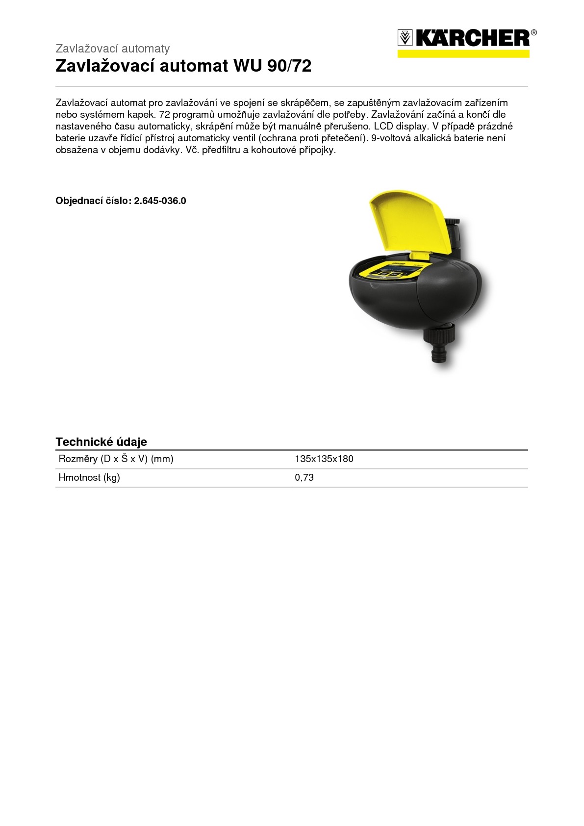 DomůZahradní technikaZavlažovací hodiny a automatyKärcher Zavlažovací automat WU 90/72