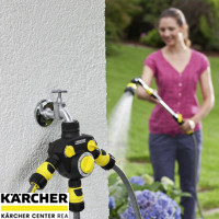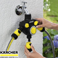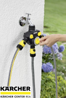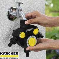 Zařízení Kärcher WT 2 je trojcestný rozdělovač a zavlažovací hodiny v jednom. Je vybaven dvěma kohoutovými přípojkami s nezávislými plynulými regulátory a vyznačuje se optimalizovaným průtokem vody. Do třetí kohoutové přípojky jsou integrovány zavlažovací hodiny. Dobu zavlažování lze plynule nastavit až na 120 min. Po uplynutí nastaveného času se zavlažování automaticky zastaví. Zavlažovací hodiny Kärcher WT 2 s kohoutovou přípojkou G1 a redukčním kusem G3/4 jsou univerzálně použitelné ve spojení se všemi dostupnými zahradními hadicemi a přesvědčí Vás robustní kvalitou a ergonomickým designem pro snadnou manipulaci. Převlečná matice s robustním vnitřním závitem zajistí jednoduché upevnění na vodovodní kohoutek. Kompatibilní s většinou připojovacích zacvakávacích systémů.